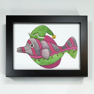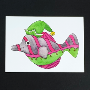 I have completed several separate themed 100-day project. My goal was to improve my watercolor skills, so each was done in watercolor. This Jingle Bell Fish is one of my favorite paintings for my Fun Funky Fish series.