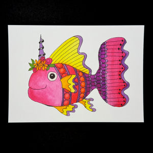 I have completed several separate themed 100-day project. My goal was to improve my watercolor skills, so each was done in watercolor. This Unicorn Fish is one of my favorite paintings for my Fun Funky Fish series.