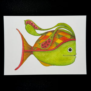 I have completed several separate themed 100-day project. My goal was to improve my watercolor skills, so each was done in watercolor. Georgie Fish is one of my favorite paintings for my Fun Funky Fish series.